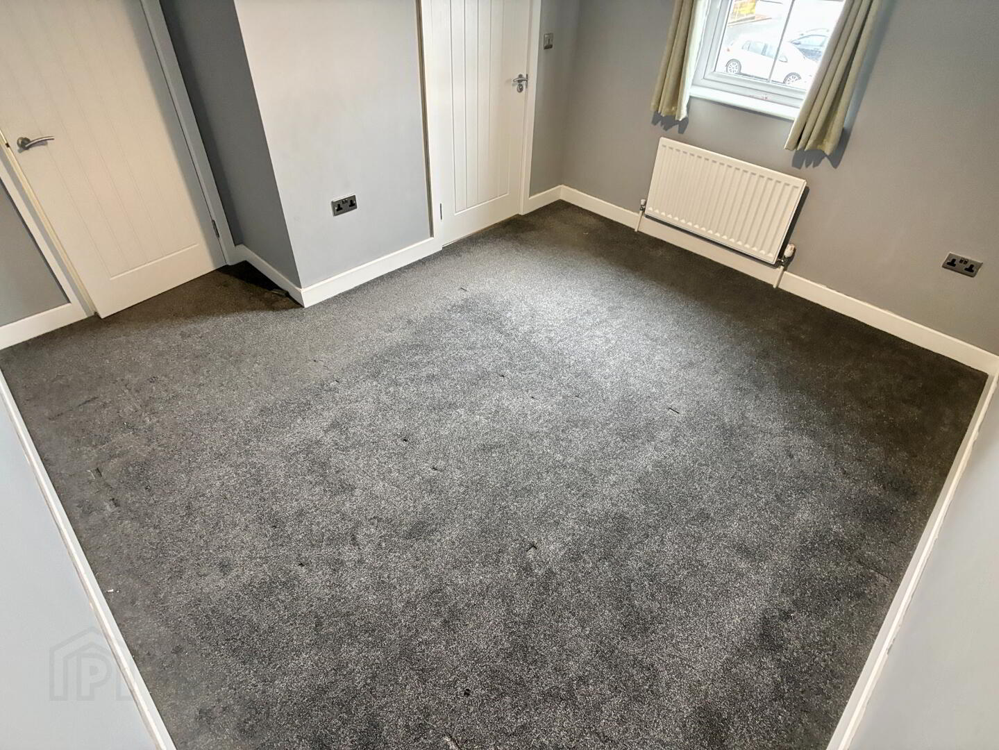 Rear aspect single bedroom, single panel radiator and carpet flooring.