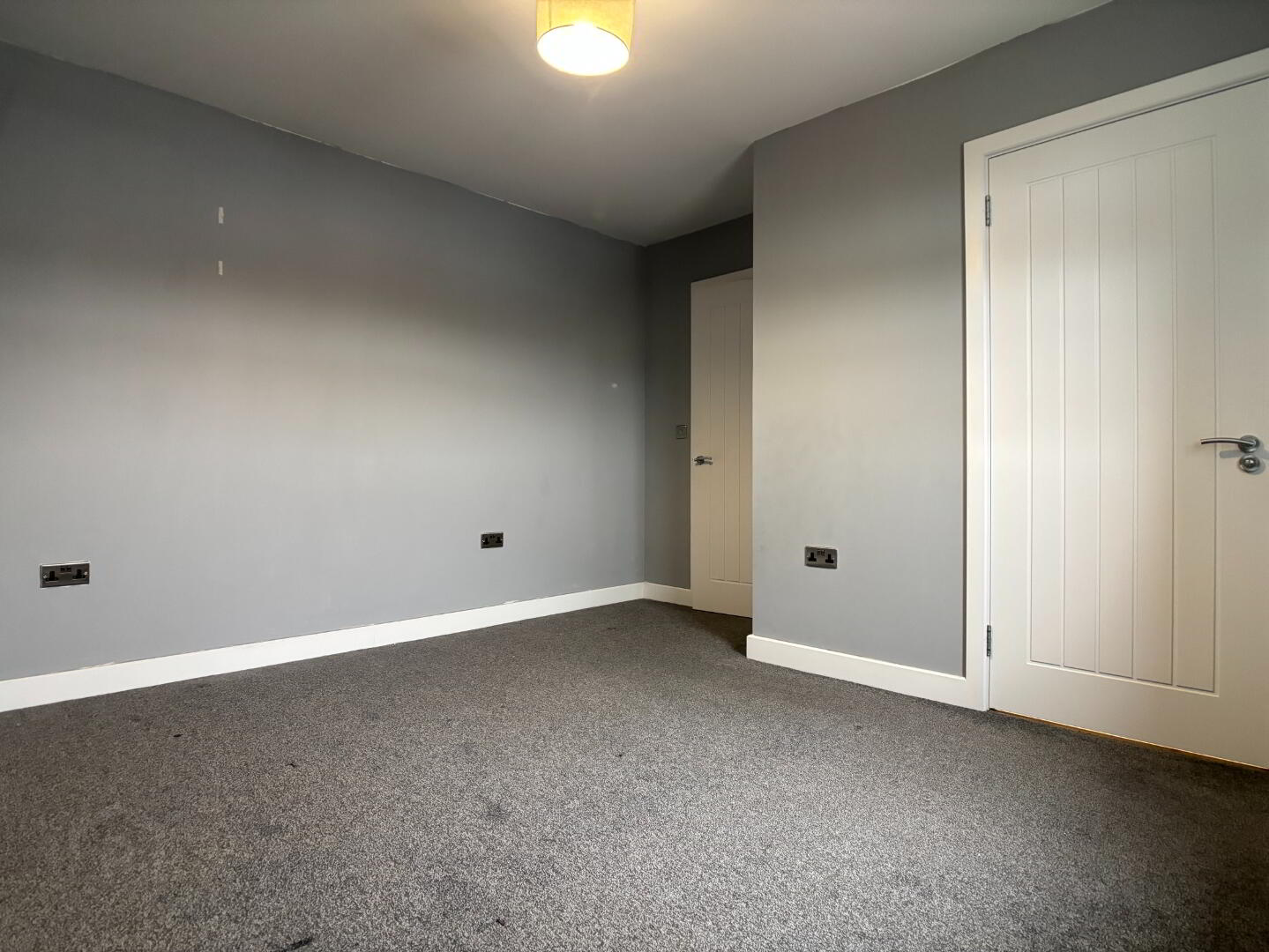 Front aspect double bedroom with enclosed storage cupboard, single panel radiator, roller blind and carpet flooring.
