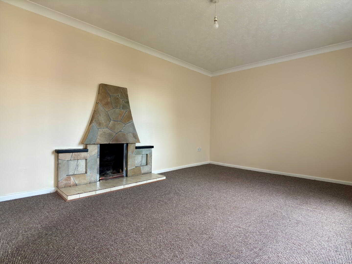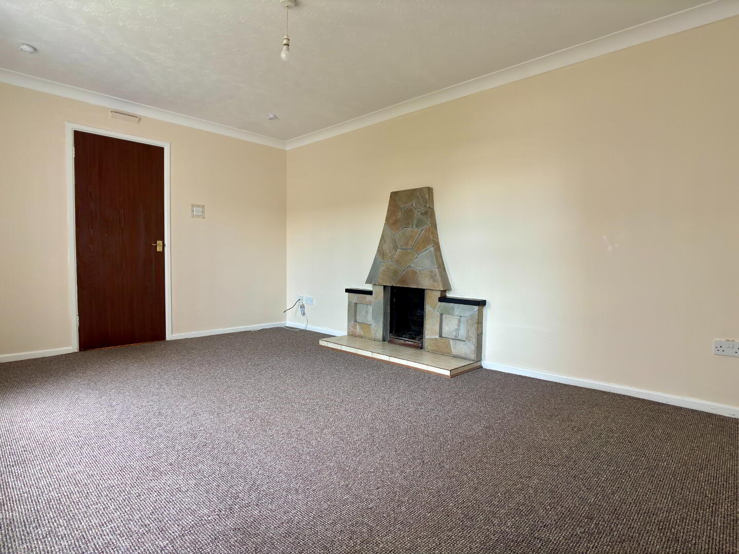 Front aspect living room with open fire in feature fireplace, double panel radiator, vertical blinds and carpet floorings.