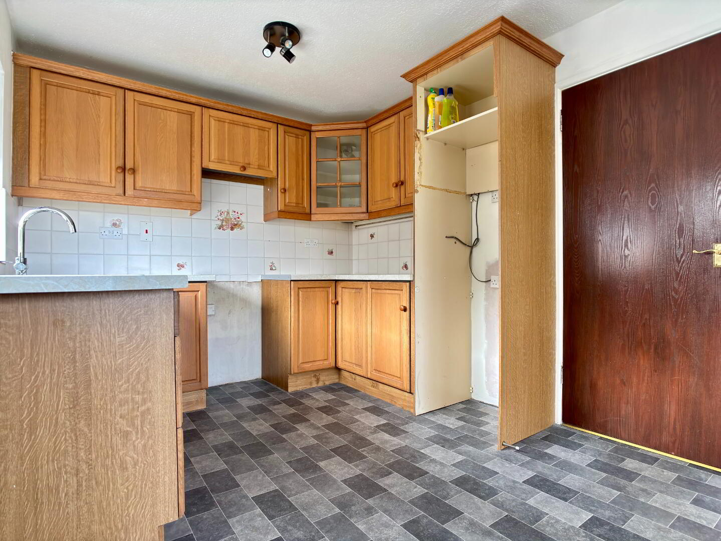A good range of high and low level cupboards and drawers, 1.5 stainless steel sink bowls and drainer, space for cooker and fridge/freezer, double panel radiator, vertical blinds and vinyl flooring. Space for table and chairs.