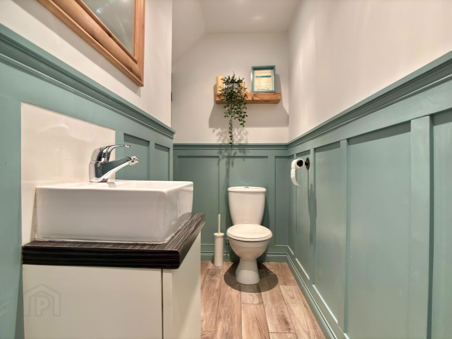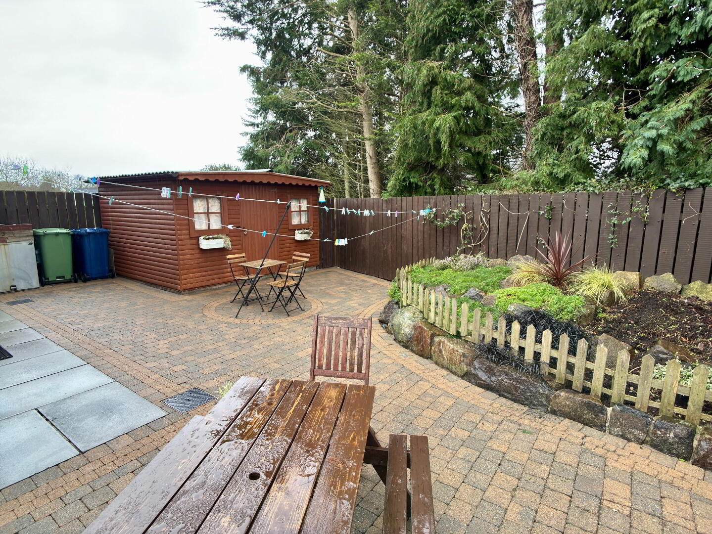Spacious low maintenance rear garden in decorative Tobermore brick paving and flowerbed in stone border surrounded by wall and timber fencing. Fence to front of property. Electric vehicle charging pod point, external electric socket and water tap. Half log roll shed 12' x 10' on concrete foundation with damp proof course with metal roof and guttering can be purchased at an additional cost. Spacious tarmac driveway providing an abundance of off street parking for numerous vehicles.