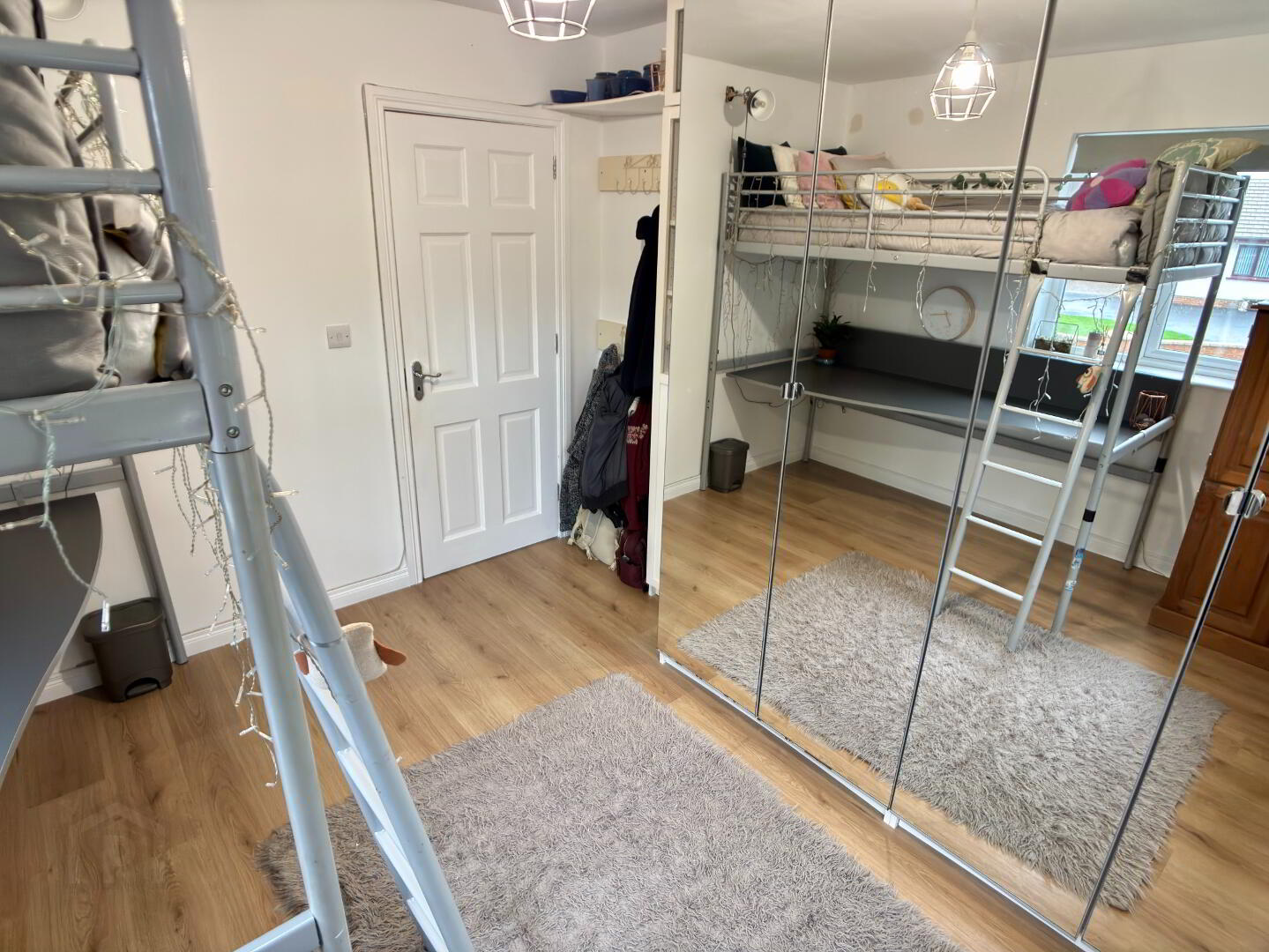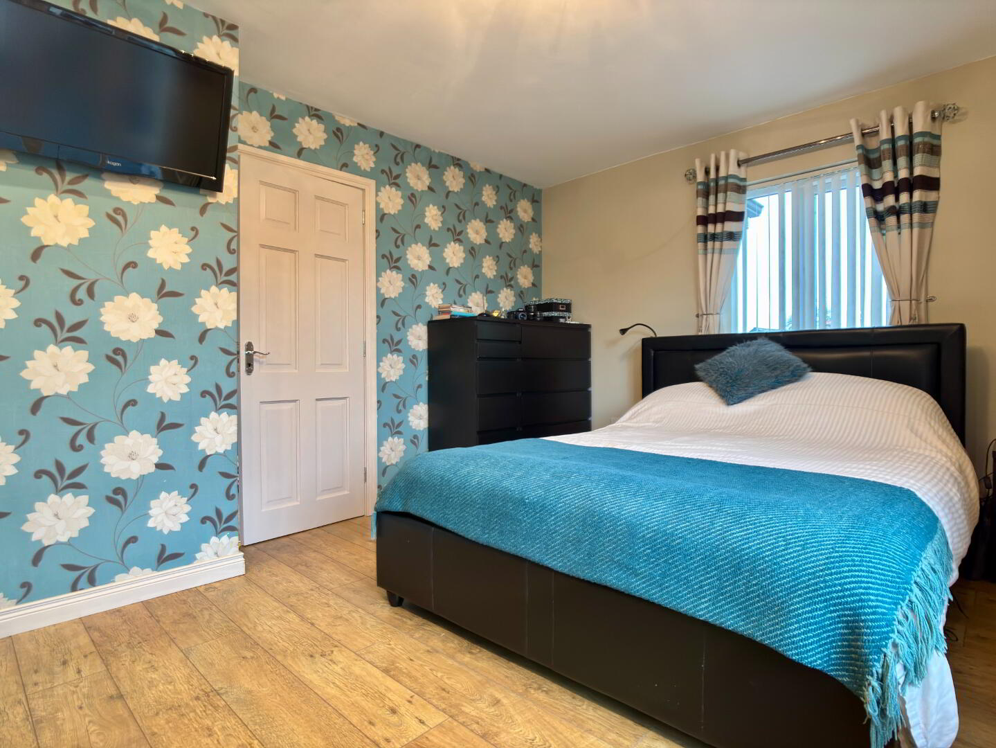 Side and rear aspect double bedroom, single panel radiator, wooden flooring and roller blinds.
