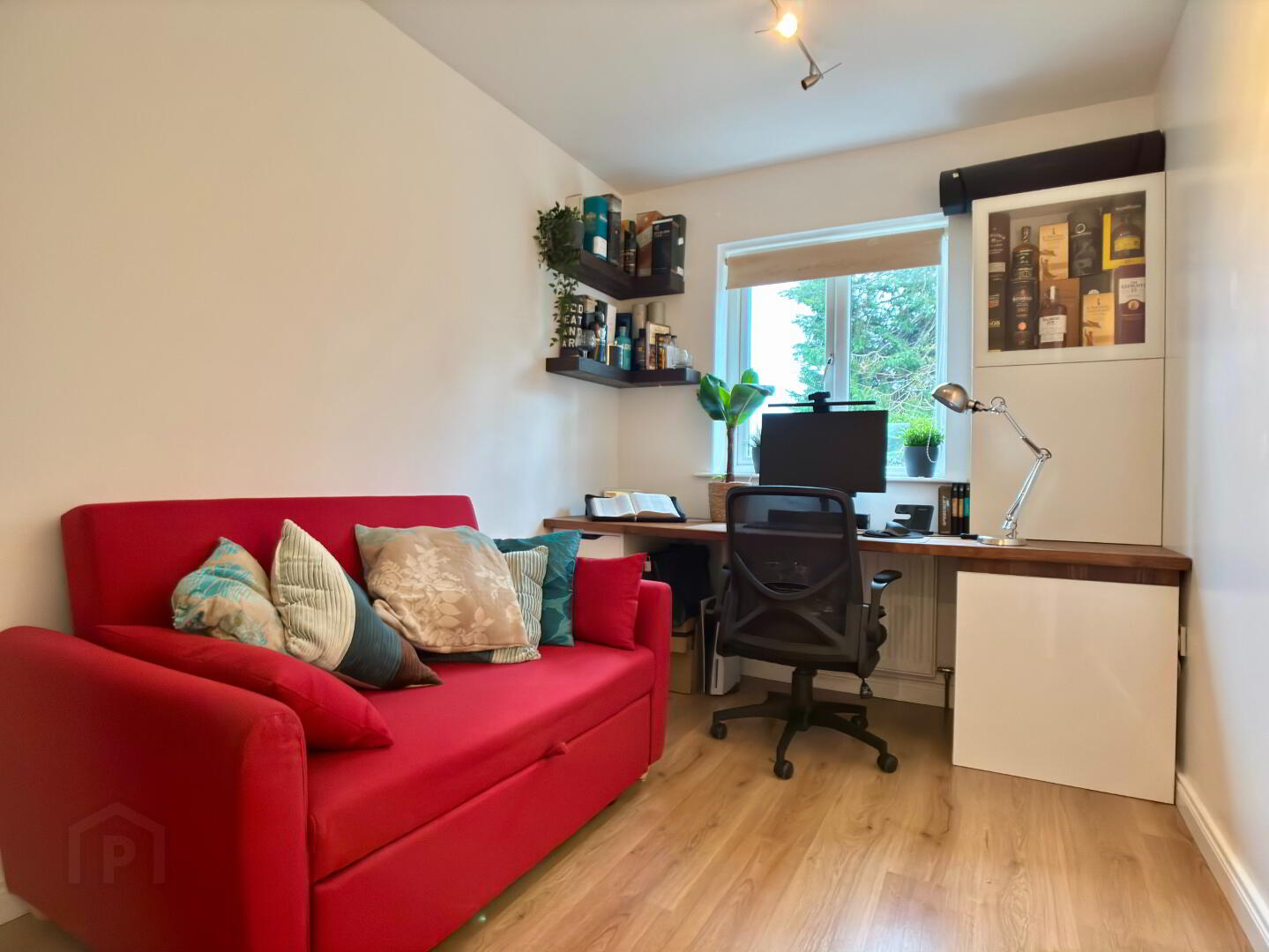 Rear aspect single bedroom currently used an office, single panel radiator, wooden flooring and roller blind.