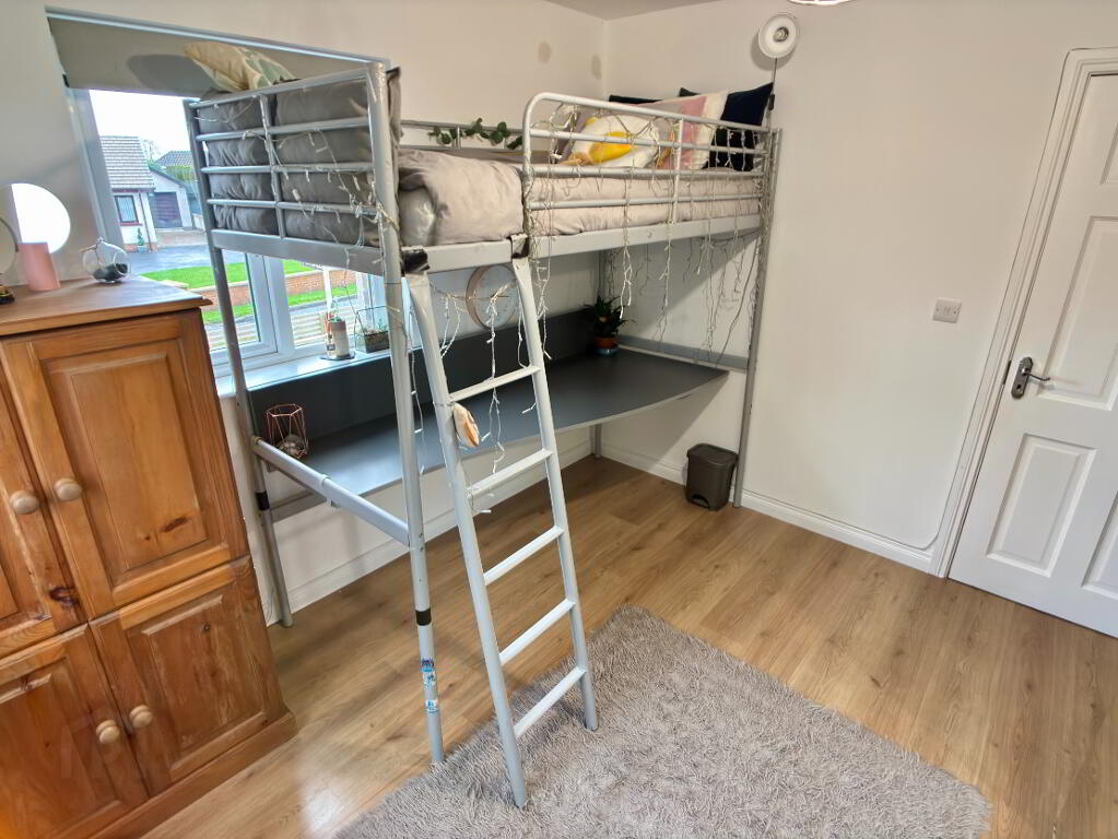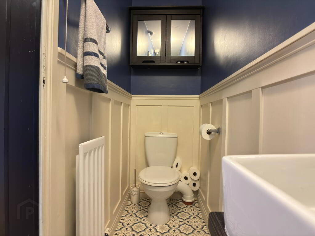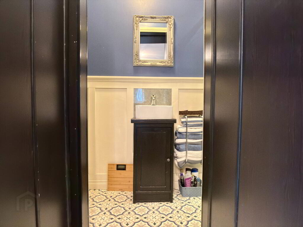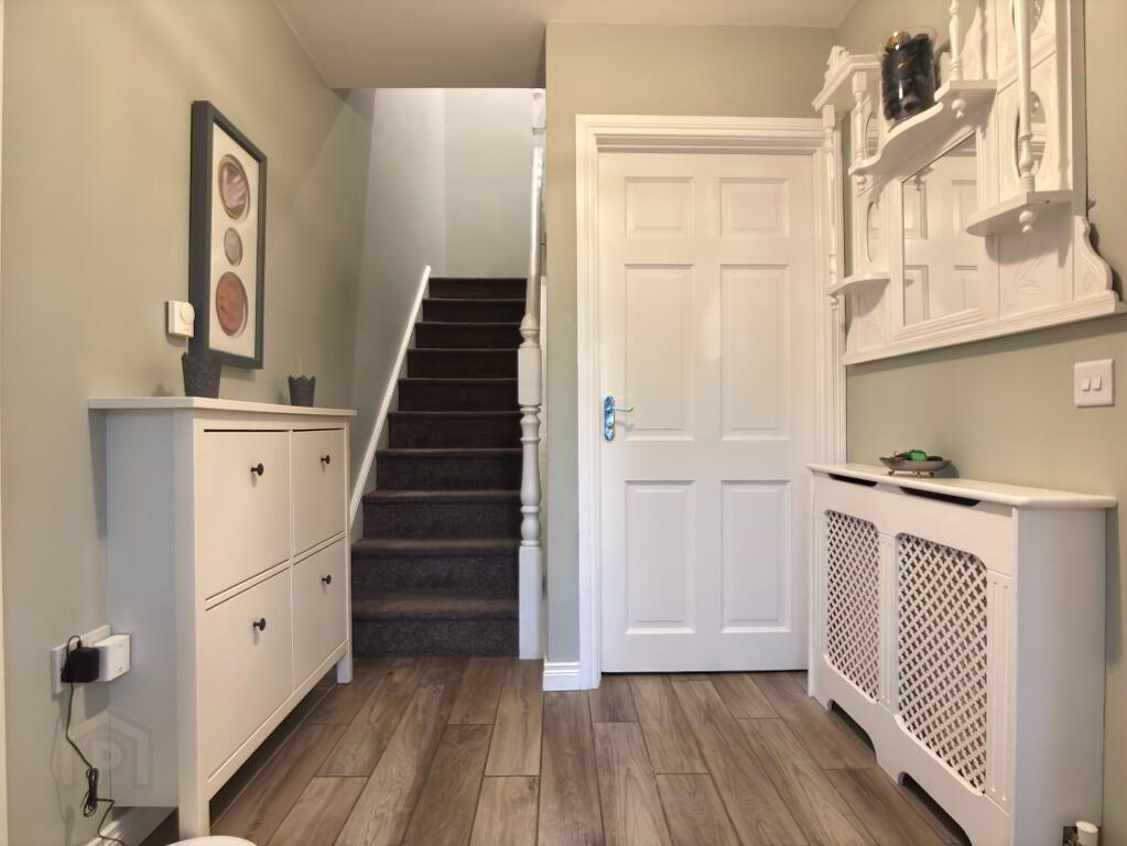 Spacious low maintenance rear garden in decorative Tobermore brick paving and flowerbed in stone border surrounded by wall and timber fencing. Fence to front of property. Electric vehicle charging pod point, external electric socket and water tap. Half log roll shed 12' x 10' on concrete foundation with damp proof course with metal roof and guttering can be purchased at an additional cost. Spacious tarmac driveway providing an abundance of off street parking for numerous vehicles.