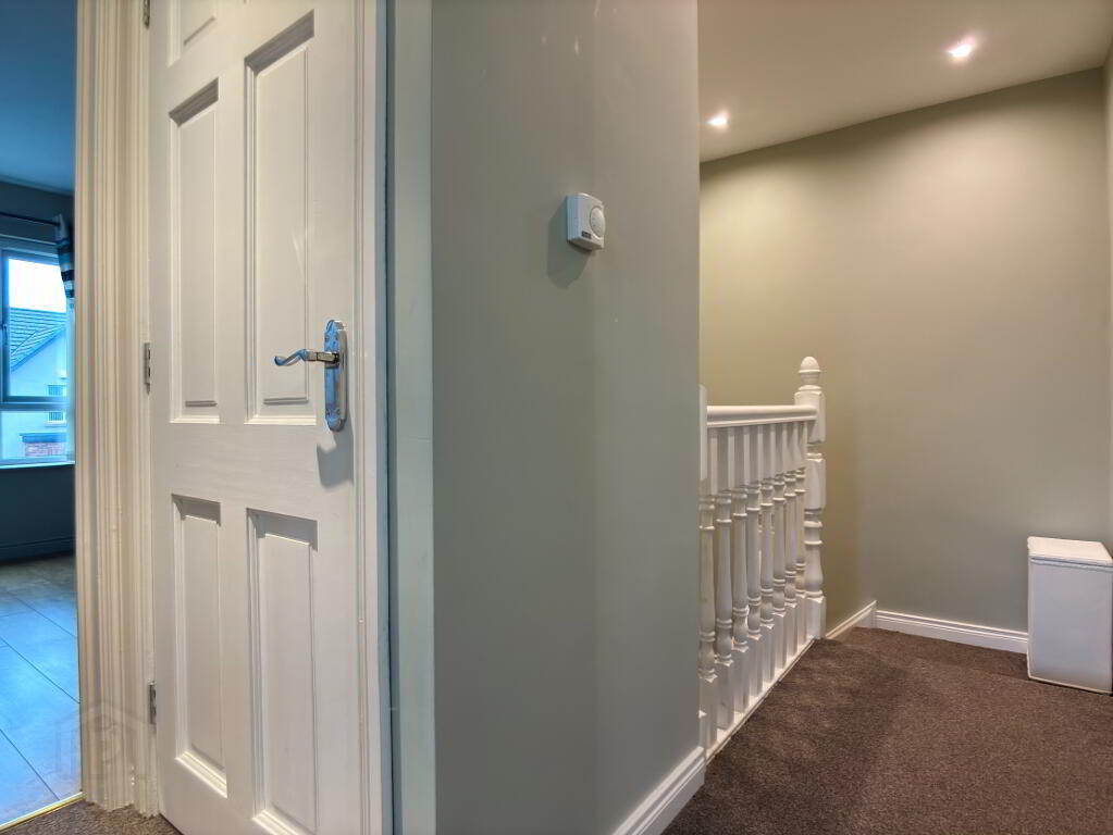 Storage cupboard, single panel radiator, recessed downlighting, single panel radiator and carpet flooring. Access to part floored roofspace with light.