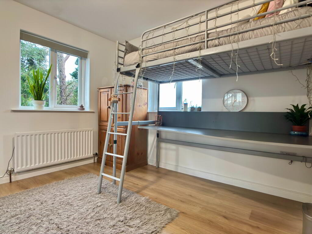 Side and rear aspect double bedroom, single panel radiator, wooden flooring and roller blinds.