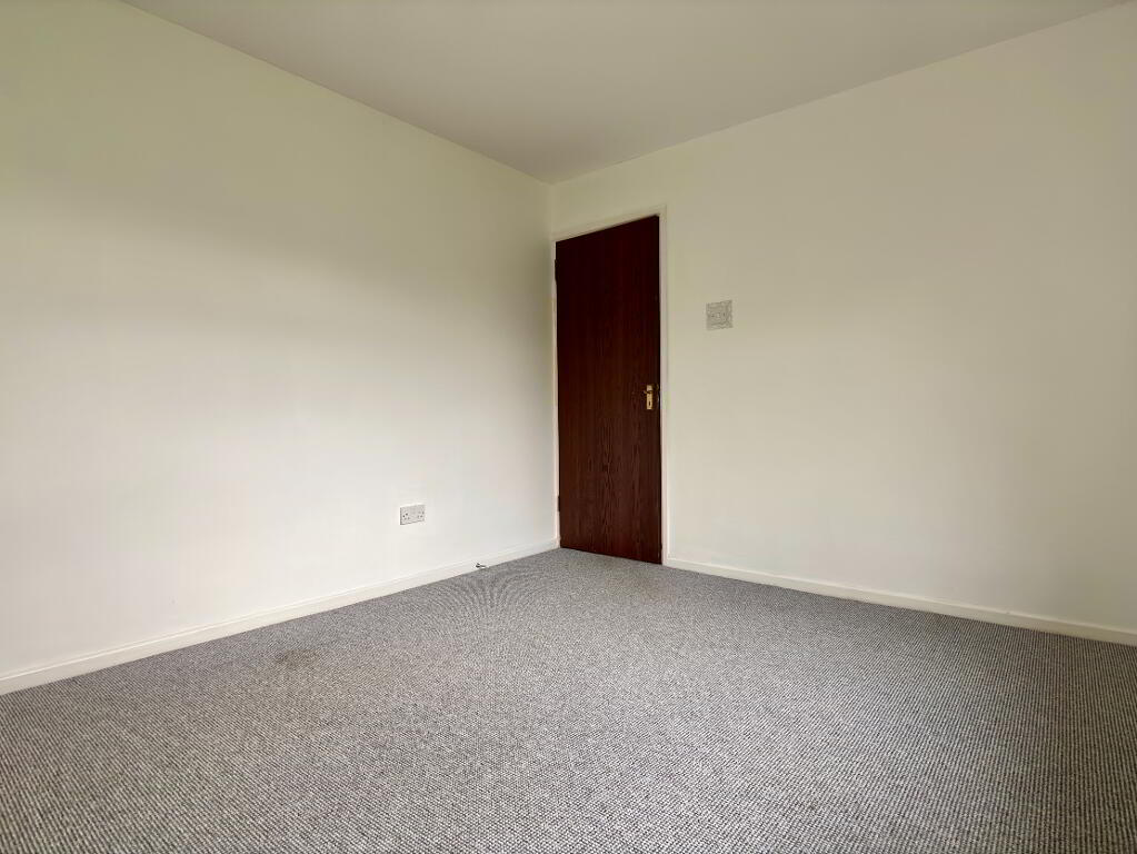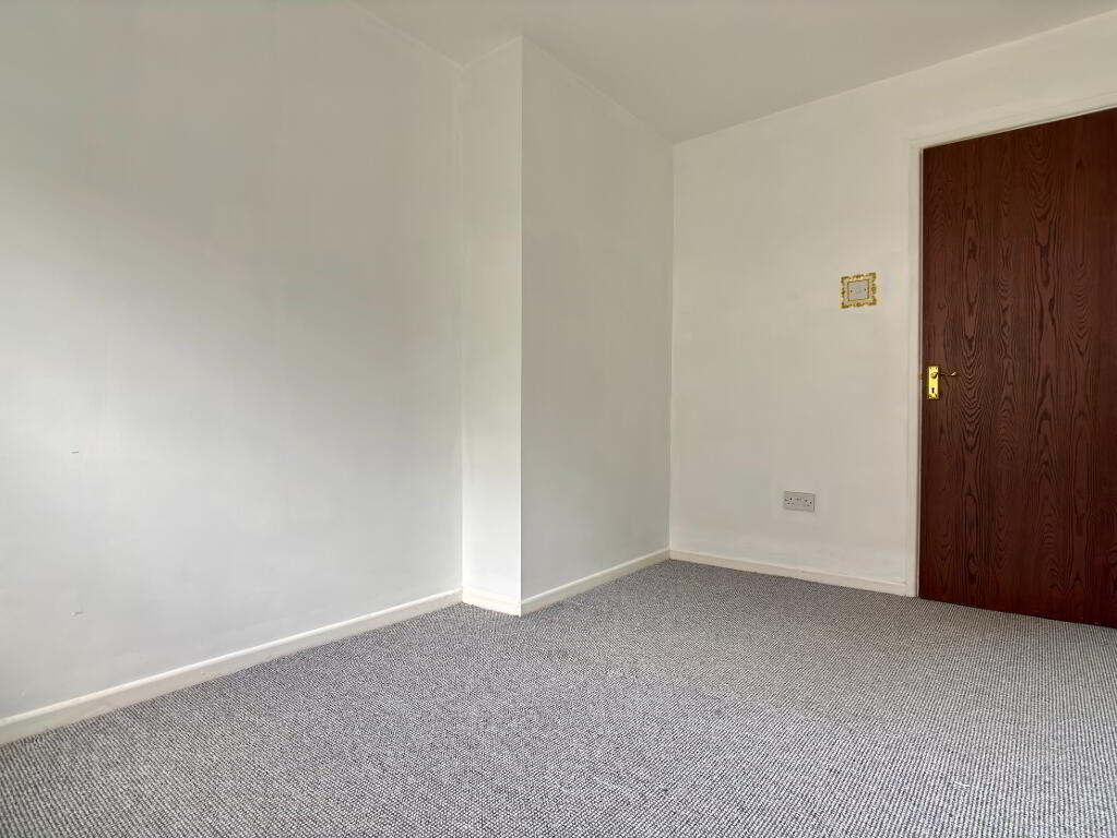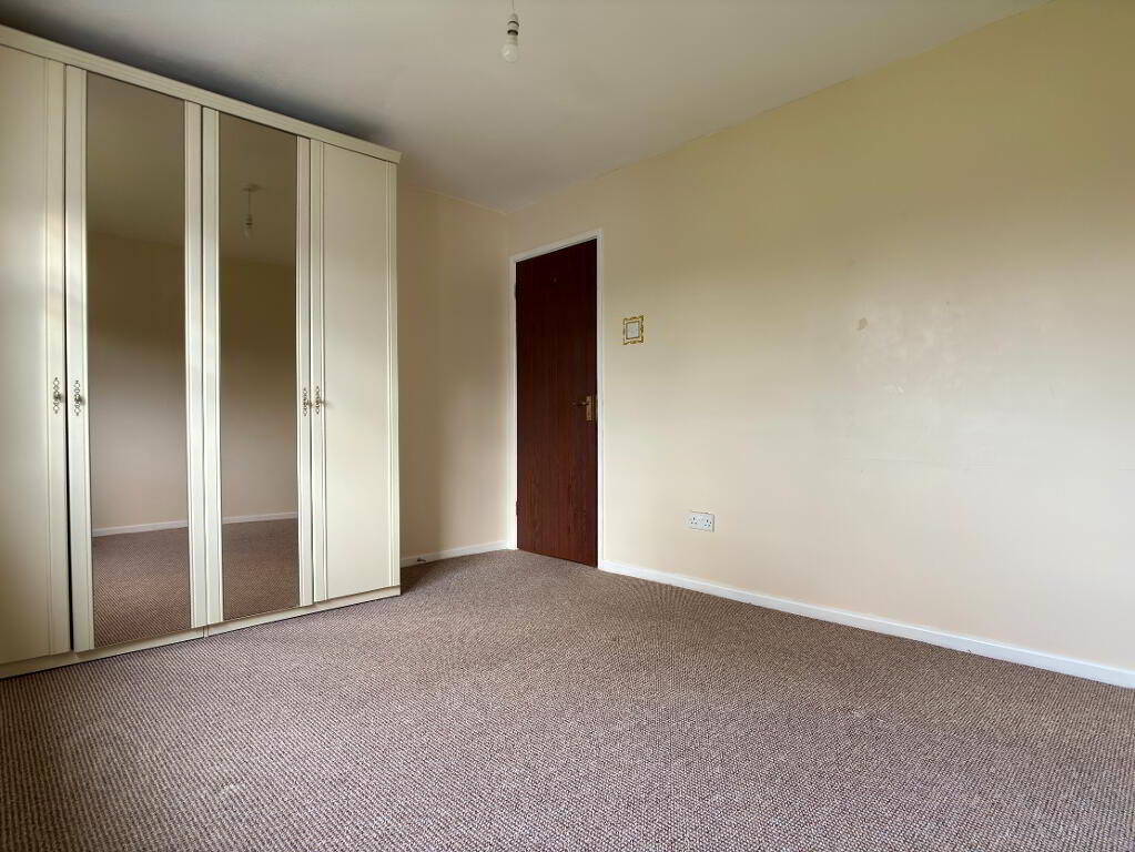 Rear aspect double bedroom with built in wardrobe, single panel radiator and carpet flooring.