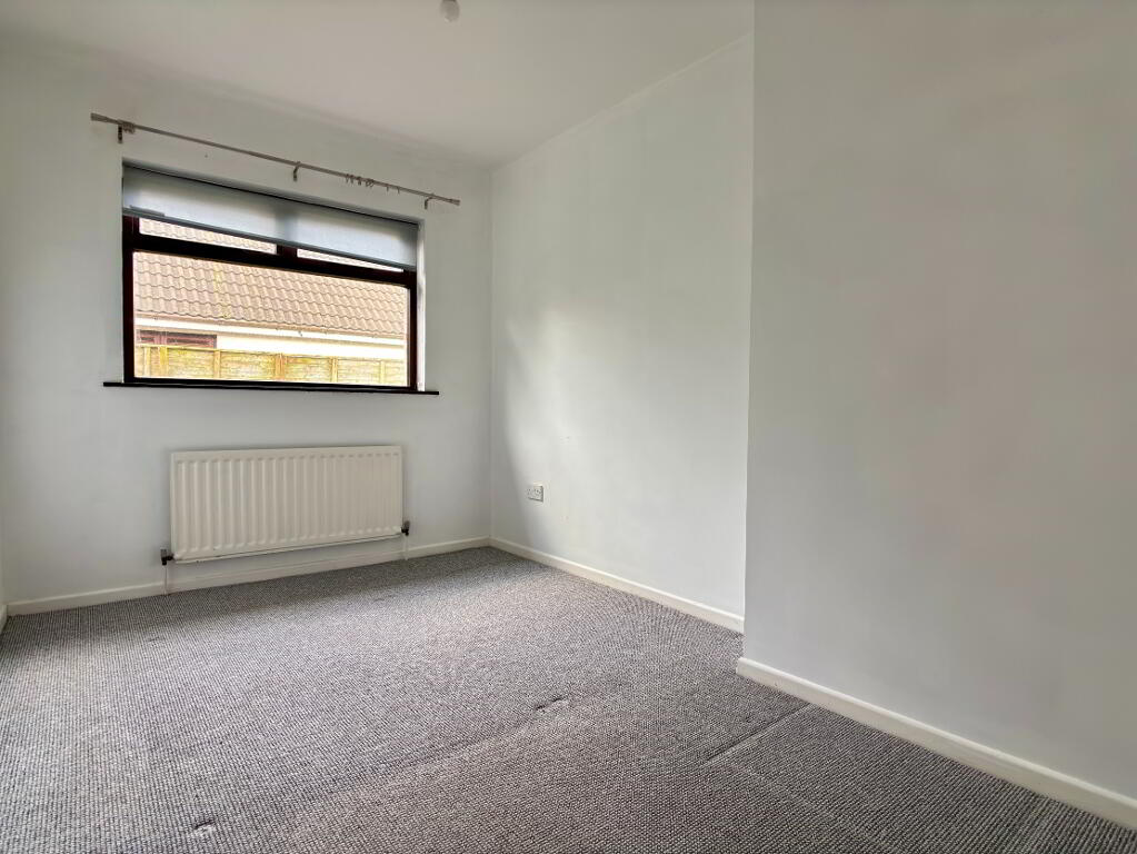 Rear aspect double bedroom, single panel radiator and carpet flooring.