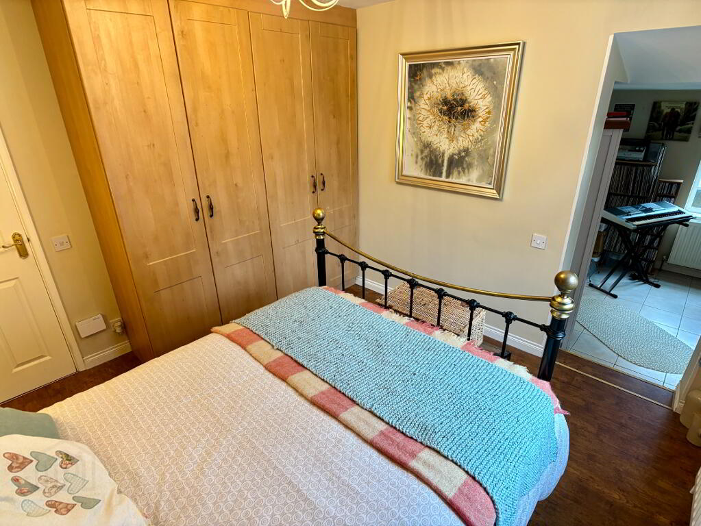 Rear aspect double bedroom with built in wardrobes, single panel radiator and Pergo wooden flooring. Utility room, dressing room and ensuite shower room off.