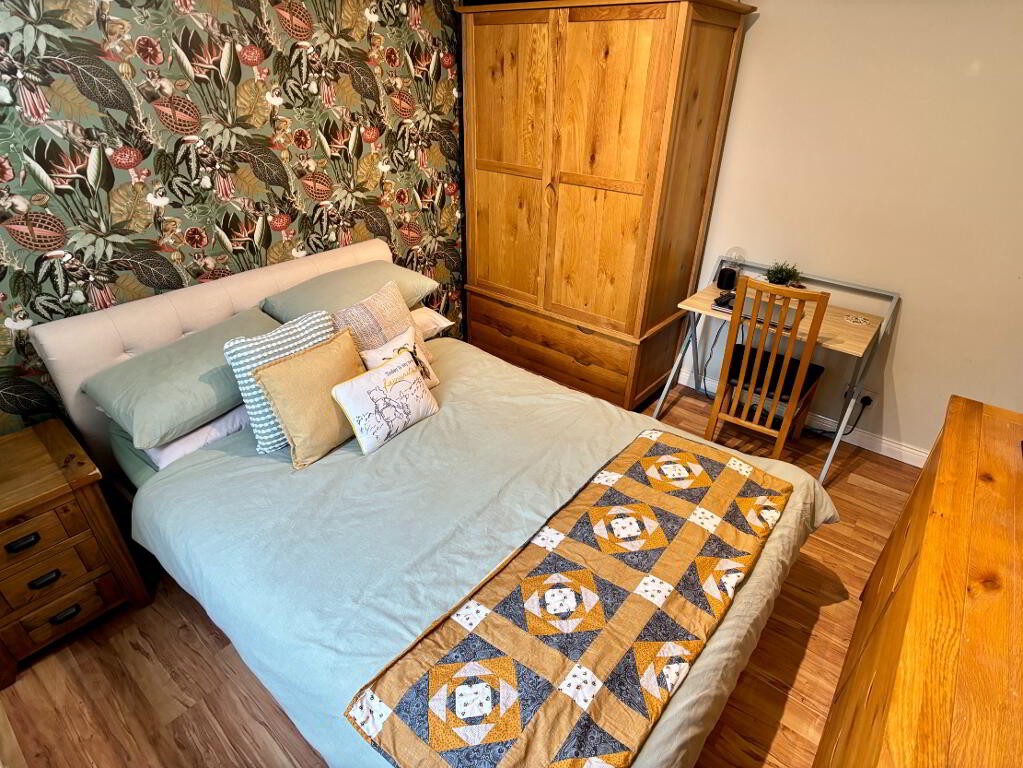 Rear aspect double bedroom, single panel radiator and Pergo wooden flooring.
