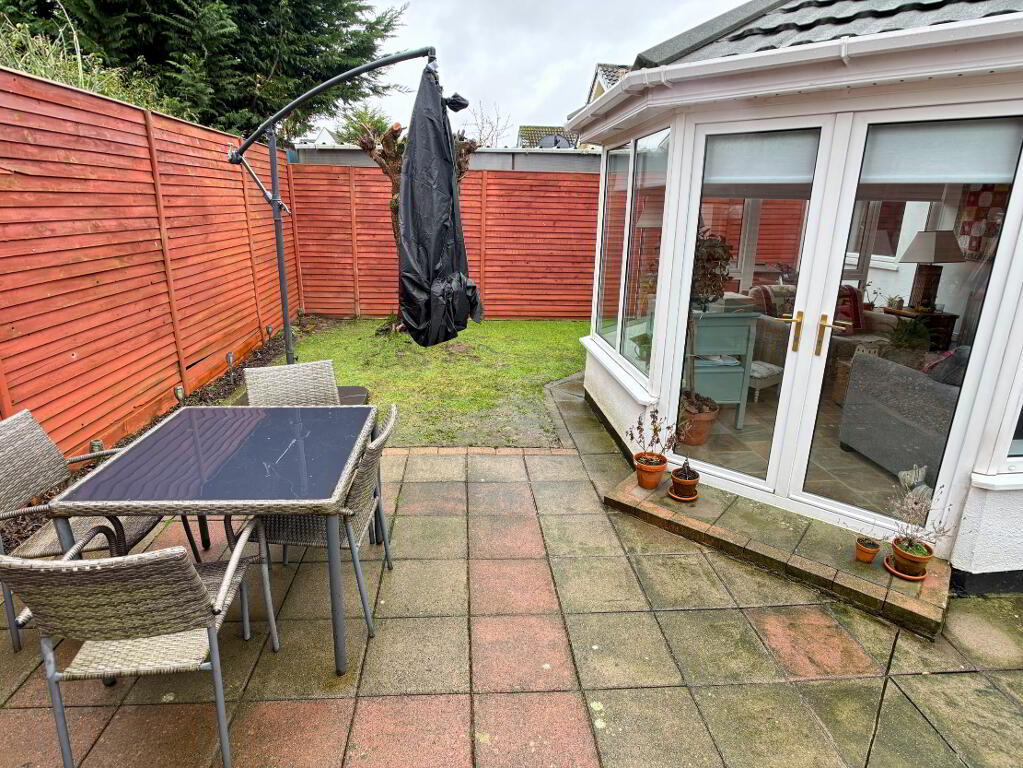 Fully enclosed private rear garden laid in lawn with paved patio area surrounded by timber fencing. Gate to side of property. Front garden laid in lawn with trees and bedding areas. Spacious concrete driveway providing ample off street parking and timber fence.