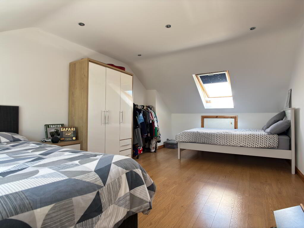 Front and rear aspect double bedroom, double panel radiator, two velux windows, recessed downlighting and laminate flooring. Eve storage.